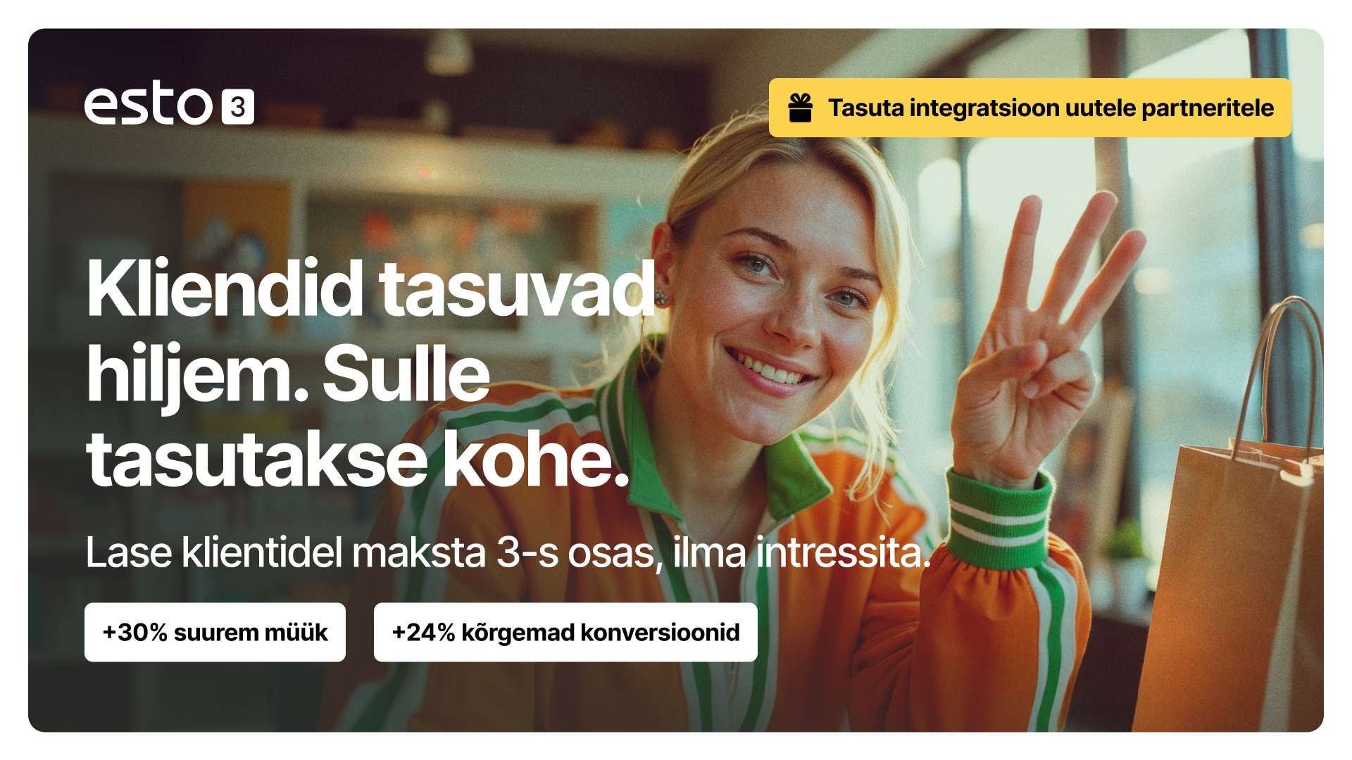 - Rõhuta erilist väärtust: tee eripakkumine ainult ESTO kasutajatele (nt „Maksa ESTO 3 kaudu ja saad toote veel 10% soodsamalt“). See annab klientidele selge põhjuse teha ostud just Sinu kauplusest ja mitte konkurendi juurest.